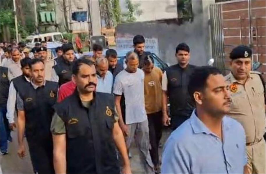 पलवल जिले के धोलागढ़ गांव में हाल ही में हुई करीब 55 लाख रुपए की डकैती की वारदात का पुलिस ने खुलासा किया है। स्पेशल स्टाफ और कैंप थाना पुलिस ने संयुक्त कार्रवाई करते हुए चारों आरोपियों को गिरफ्तार कर लिया। गिरफ्तारी के बाद पुलिस ने आरोपियों की गांव में परेड कराई और उन्हें उस स्थान पर लेकर गई, जहां डकैती की घटना को अंजाम दिया गया था।