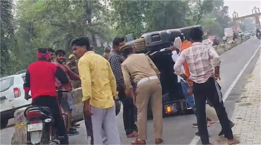 अमरोहा: गजरौला कोतवाली क्षेत्र के तिगरी मेला रोड पर नशे में धुत रईसजादों की थार ने कहर मचा दिया। तेज रफ्तार में गलत दिशा से दौड़ाई जा रही थार अचानक अनियंत्रित होकर डिवाइडर से जा टकराई और फिल्मी स्टाइल में सड़क पर पलट गई। हादसा इतना भयावह था कि राहगीर बाल-बाल बच गए।